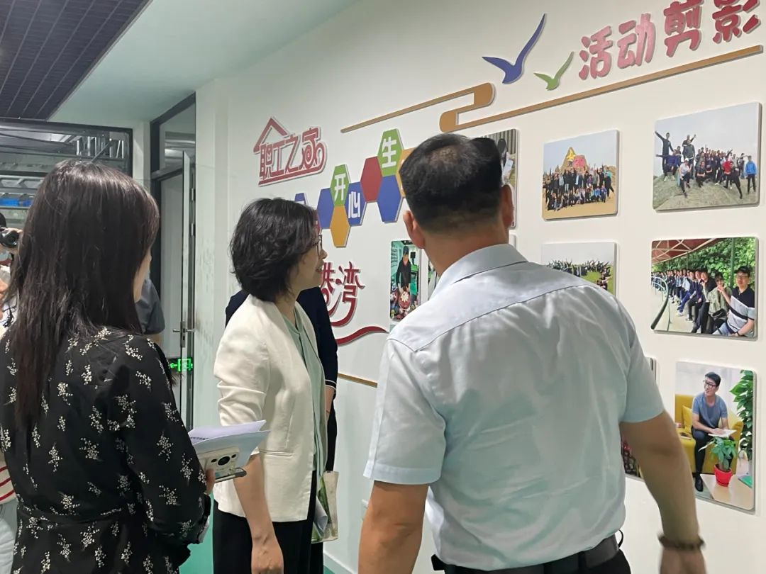 董事長邢志文、工會主席傅珊珊向各位領導詳細介紹分布于各樓層的服務站點的功能設計,不僅僅滿足于職工日常所需,同時也作為黨群工作開展的宣傳窗口和陣地,融合了寶開長期以來打造的和諧之家的企業(yè)文化。